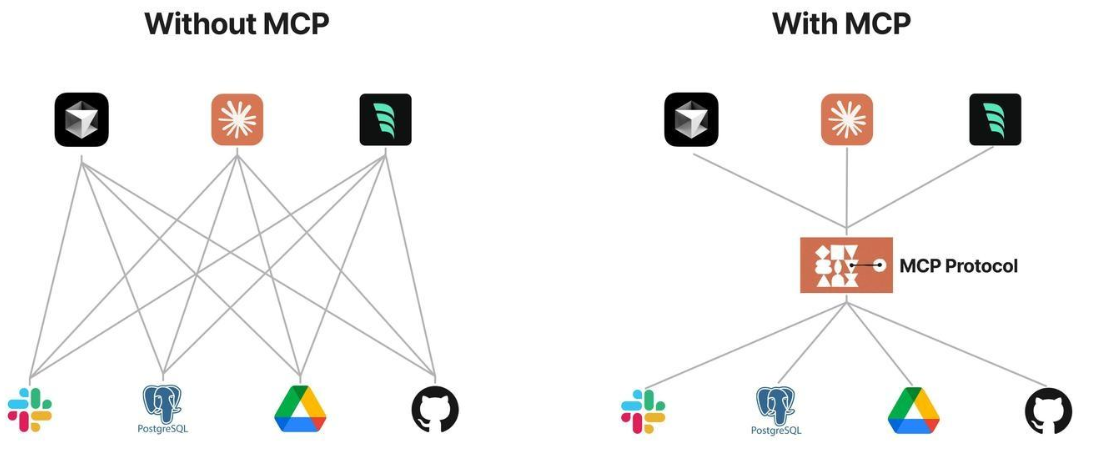 MCP的出现使得AI应用程序的开发和集成变得更加简单和统一。它为LLM提供了标准化的接口,帮助开发者在构建代理(agents)和复杂工作流时,能够更高效地与数据和工具集成。通过MCP,开发者不再需要重复造轮子,而是可以专注于构建更强大的AI代理生态。