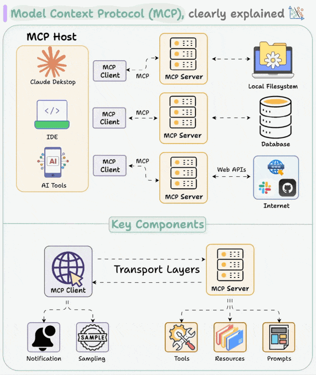 MCP采用客户端-服务器架构,主要包括以下三个核心组件: